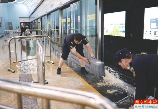 9月8日,深圳地铁多条线路区段暂停运营服务,紧急调集1600余人参与抢险作业。