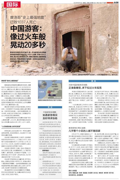 摩洛哥内政部9月9日表示,前一天深夜发生在该国南部的强烈地震已造成至少1037人遇难,另有1204人受伤。