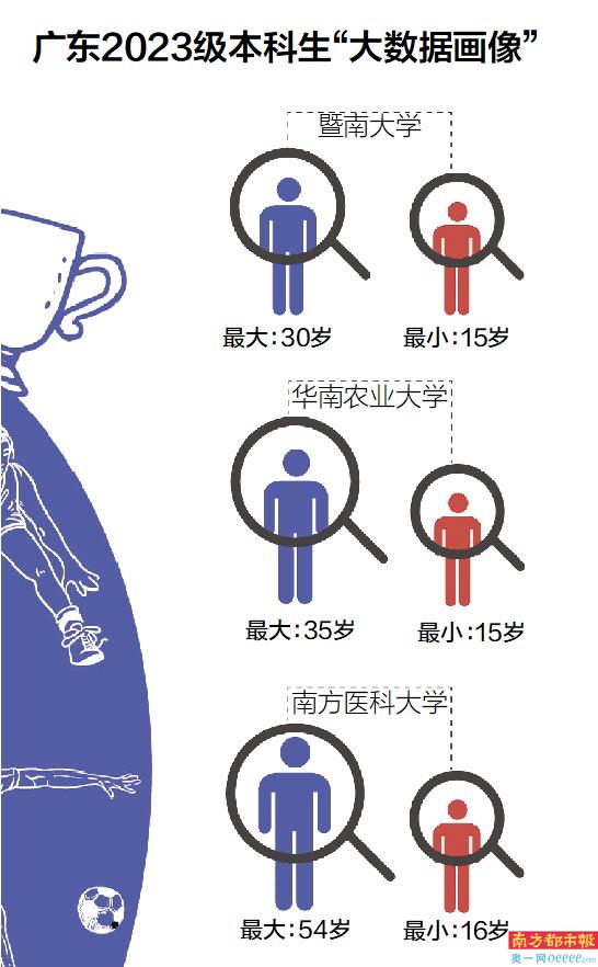 也有“高龄”新生,将本科新生的年龄差拉大到近40岁。南方医科大学今年本科新生中,年纪最大的为54岁,最小的16岁,相差38岁。