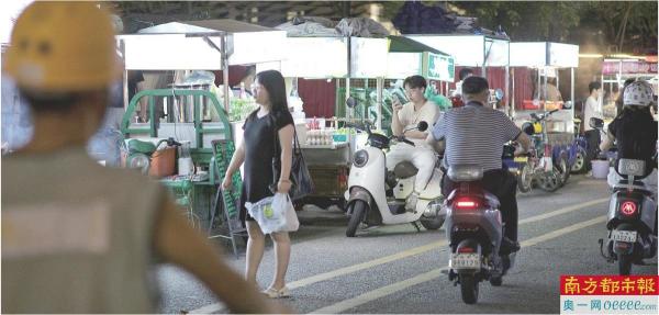 南都记者在现场看到,有专人看着这个自发形成的夜市,其称主要工作是防止摊贩返流到主干道,一直到摊主收工回家,他一天的工作才算结束。