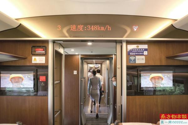 车厢内电子屏显示实时速度348公里/小时。