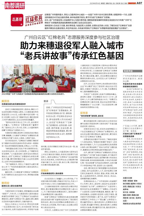 2023年度广州市“红棉老兵”志愿服务高质量发展调研活动第三站在白云区进行。