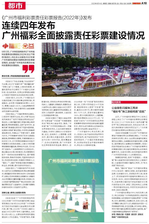 9月12日,广州市民政局发布《广州市福利彩票责任彩票报告(2022年)》,向社会公众报告2022年度广州市福利彩票发行销售和责任彩票建设情况。