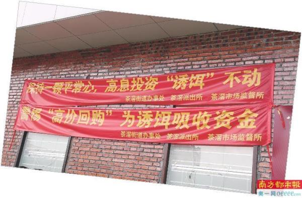 街道和派出所在茶有益办公室外挂起提醒横幅。