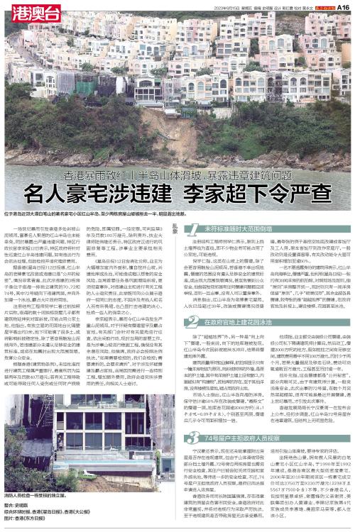 一场世纪暴雨引发香港多处斜坡山泥倾泻,富豪名人聚居的红山半岛也未能幸免,同时暴露出严重违建问题。