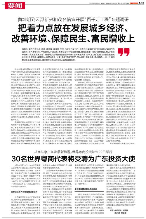9月18日至19日,省委书记黄坤明先后到云浮新兴县和茂名信宜市,进行调研。