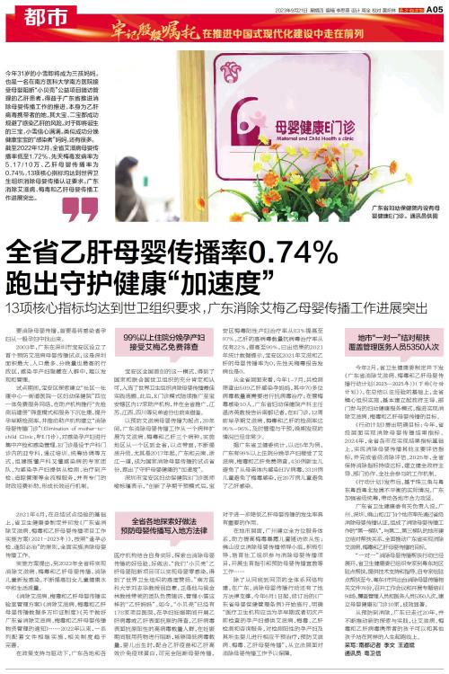 广东消除艾滋病、梅毒和乙肝母婴传播工作进展突出。