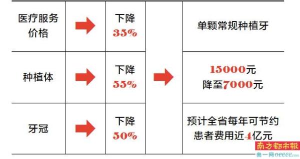 今年4月20日起,广东省全面实施规范口腔种植医疗服务收费、种植体集中带量采购、牙冠限价挂网“三位一体”综合治理,公立医疗机构单颗常规种植牙总费用从15000元左右降至7000元左右,并将降价效应辐射到民营医疗机构。