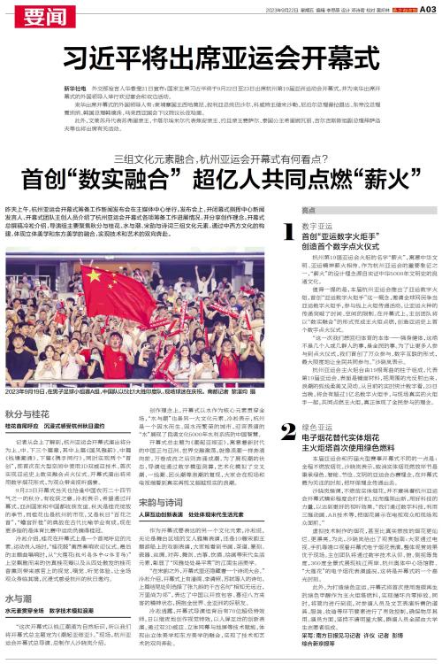 昨天上午,杭州亚运会开幕式筹备工作新闻发布会在主媒体中心举行。