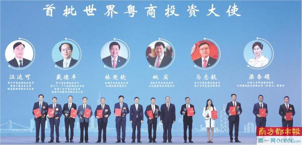 在大会主论坛世界粤商投资论坛上,曾智明等30名境内外企业家获聘成为首批世界粤商投资大使。