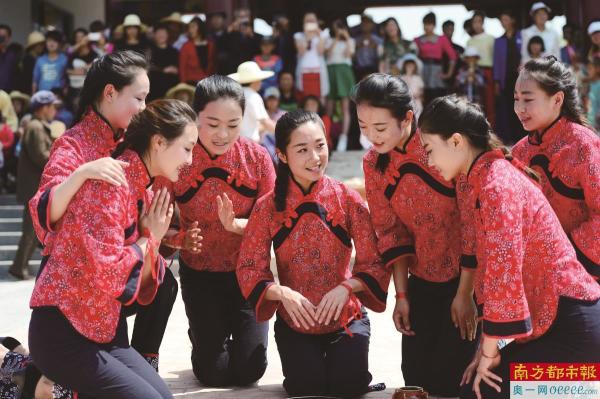 西和县几名演员在表演传统“乞巧”民俗改编的舞蹈。 新华社发
