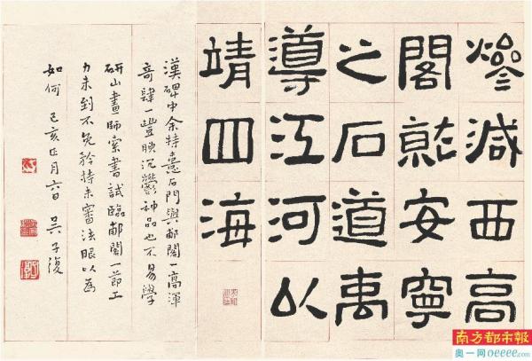 吴子复终身临碑,其习隶路径和逐步提炼出的汉隶艺术理念、审美倾向和经典分析,后来被论者和书坛称之为“六碑论”。南都记者查阅《吴子复艺谈》(吴子复著、吴瑾校勘)时发现,吴子复在《汉碑的选择与学习的先后》一文中就如何学习汉碑指出了具体的学习方法: