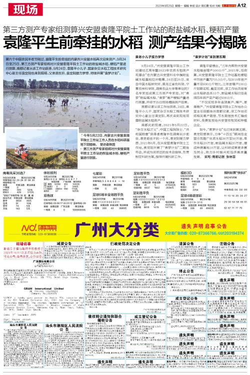 袁隆平生前牵挂的水稻 测产结果今揭晓