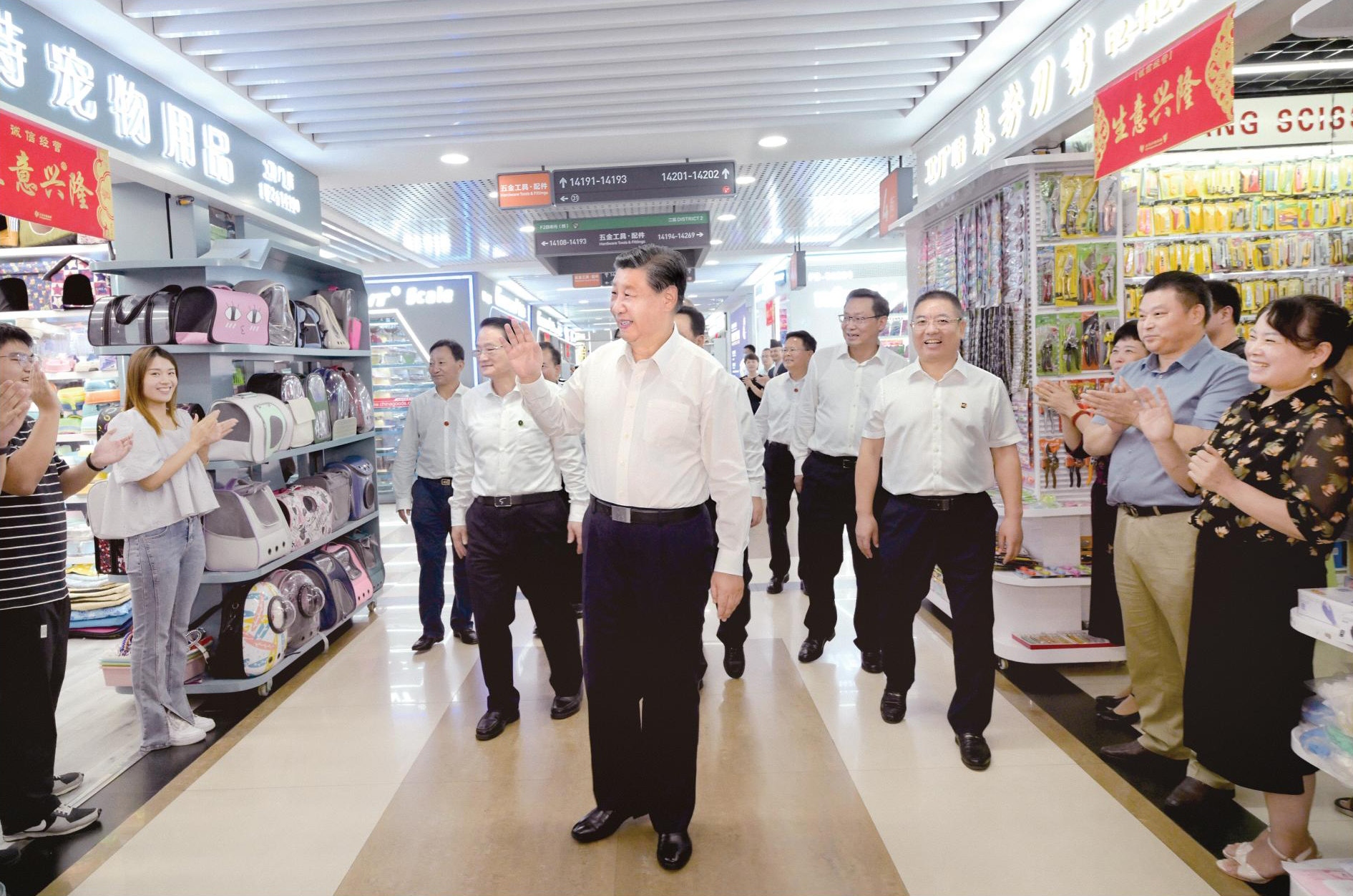 9月20日上午,习近平在义乌国际商贸城考察时,同商户亲切交流。 新华社发