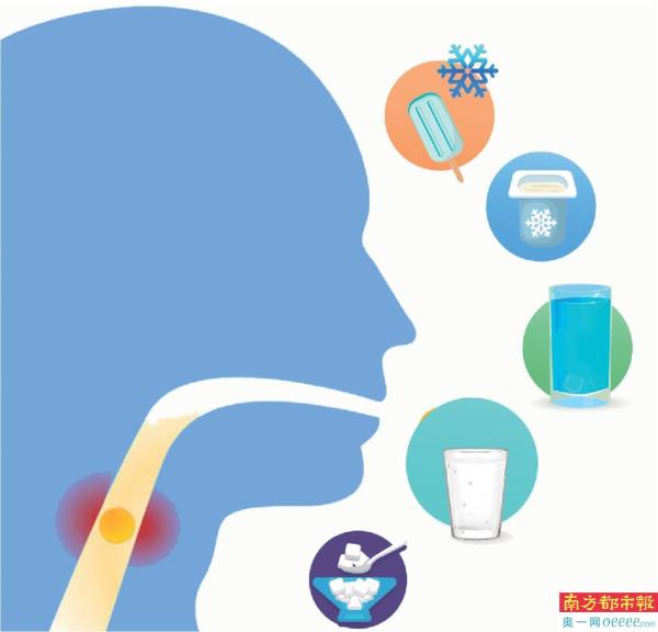 冰块、冷冻冰棒、冰淇淋、冷冻酸奶等非常冷的食物具有麻木作用,可暂时减轻或缓解吞咽疼痛。