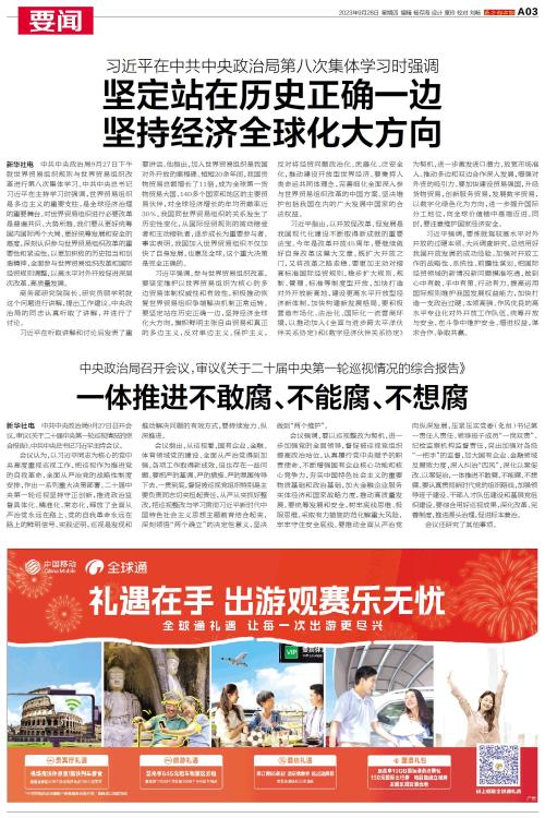 中共中央政治局9月27日下午就世界贸易组织规则与世界贸易组织改革进行第八次集体学习。