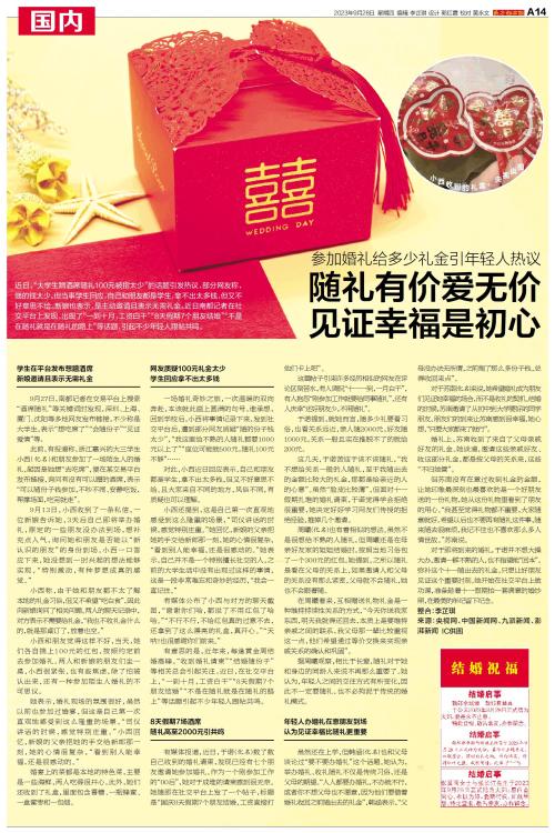 近日,“大学生蹭酒席随礼100元被指太少”的话题引发热议,部分网友称,随的钱太少。
