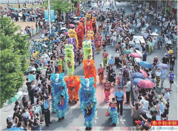 昨日上午,揭阳市举行“揭融湾区 阳耀古城”——英歌雄狮耀古城巡游活动。来自全市各地的4支舞狮队伍和4支英歌队伍相聚揭阳古城,与广大市民和来揭游客共享欢快的节日氛围,感受传统文化的魅力与感染力。 南方+记者 陈憧炜 摄影报道