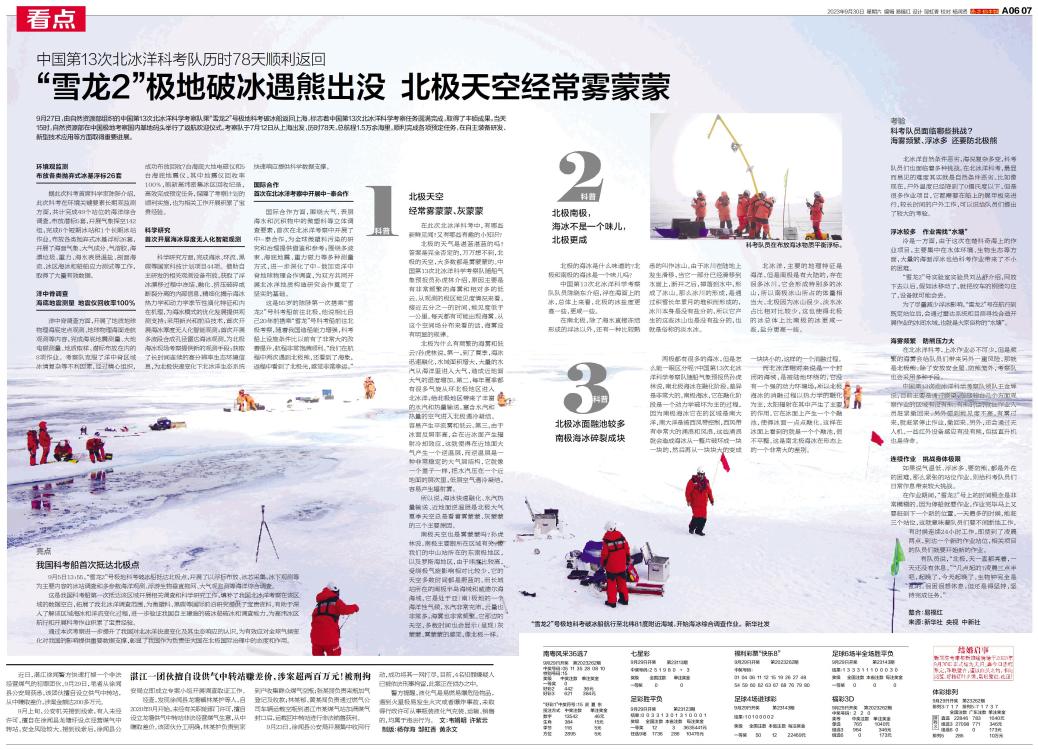通过本次考察进一步提升了我国对北冰洋快速变化及其生态响应的认识,为有效应对全球气候变化对我国的影响提供重要数据支撑,彰显了我国作为负责任大国在北极国际治理中的态度和作用。