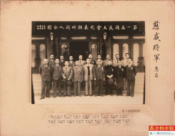 1948年抗日名将罗卓英与出席“第一届国民大会”潮州同人代表合影。
