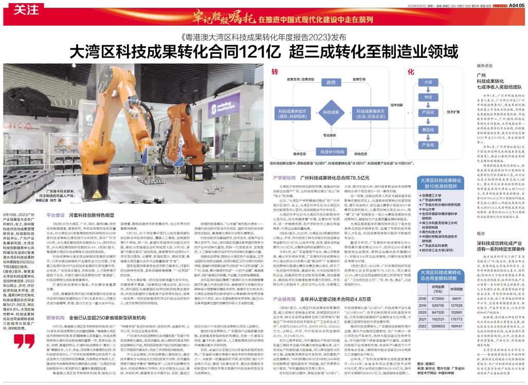 大湾区科技成果转化合同121亿 超三成转化至制造业领域