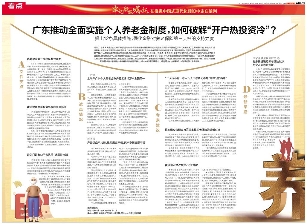 2022年11月25日,个人养老金制度在北京、上海、广州、深圳、西安、成都等36个先行城市或地区启动实施。不少“老广”尝鲜成为首批个人养老金用户。