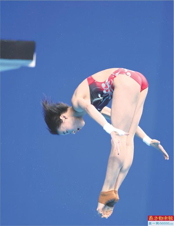 10月3日,来自广东的选手全红婵在杭州亚运会跳水项目女子10米跳台决赛中。她第二跳得到7个满分10分,最后一跳顶住压力得到94.4的高分,反超队友陈芋汐获得冠军。 南都、N视频记者 徐杰 摄