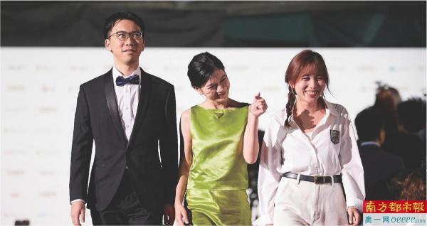 《人海同游》导演蔡杰(左)、女主角林冬萍(中)、制片人莫津津(右)亮相釜山国际电影节。