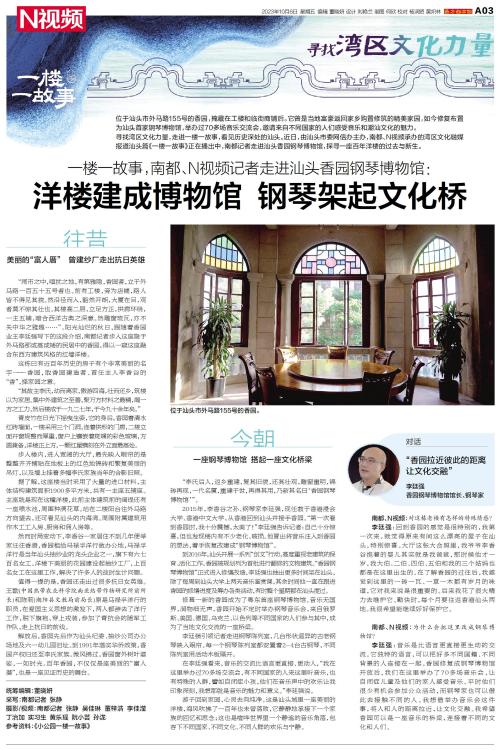 近日,由汕头市委网信办主办,南都、N视频承办的湾区文化融媒报道汕头篇《一楼一故事》正在播出中,南都记者走进汕头香园钢琴博物馆,探寻一座百年洋楼的过去与新生。