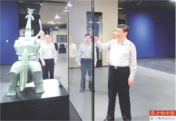 2个多月后,习近平总书记来到四川广汉三星堆考察,祝贺三星堆博物馆新馆落成使用。