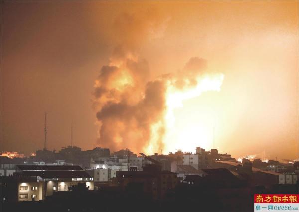 10月8日,在加沙地带,以色列军队空袭地面建筑造成的浓烟。