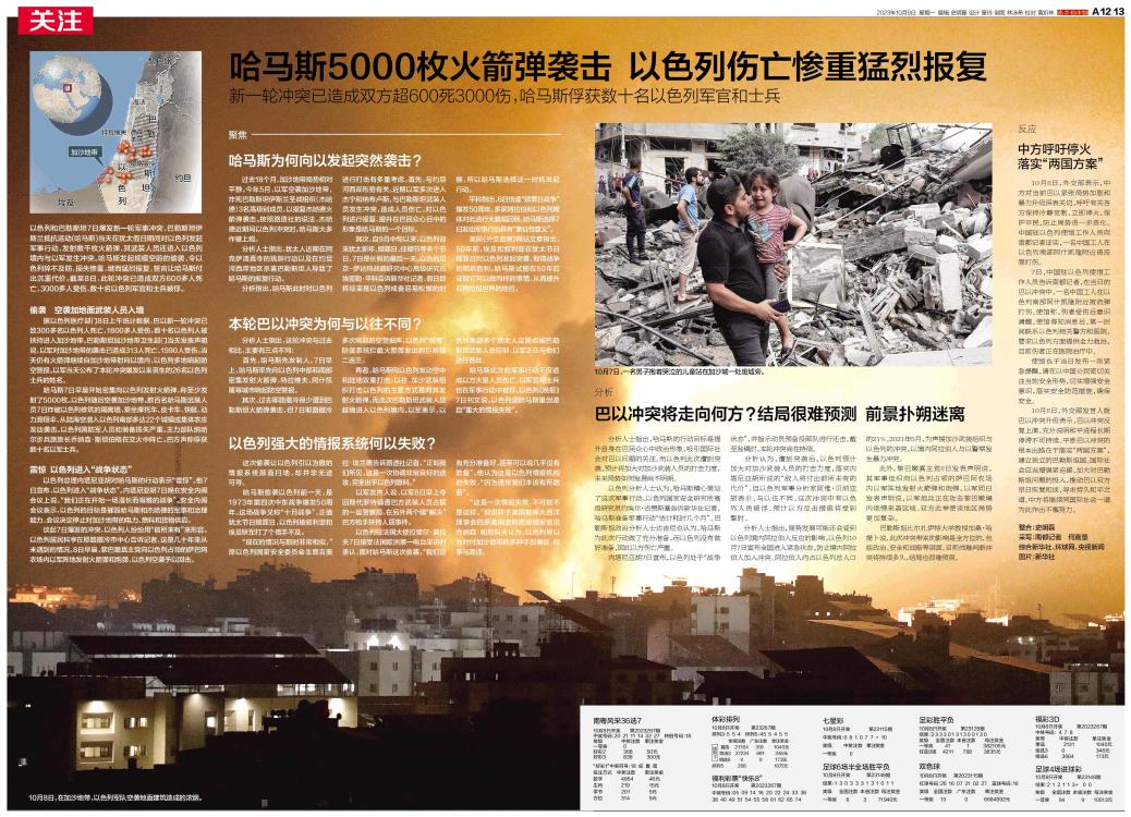 以色列和巴勒斯坦7日爆发新一轮军事冲突,巴勒斯坦伊斯兰抵抗运动(哈马斯)当天在犹太假日期间对以色列发起军事行动。