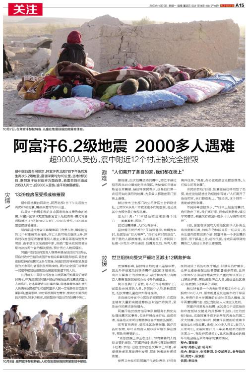 据中国地震台网测定,阿富汗西北部7日下午先后发生两次6.2级地震,震源深度均为10公里。