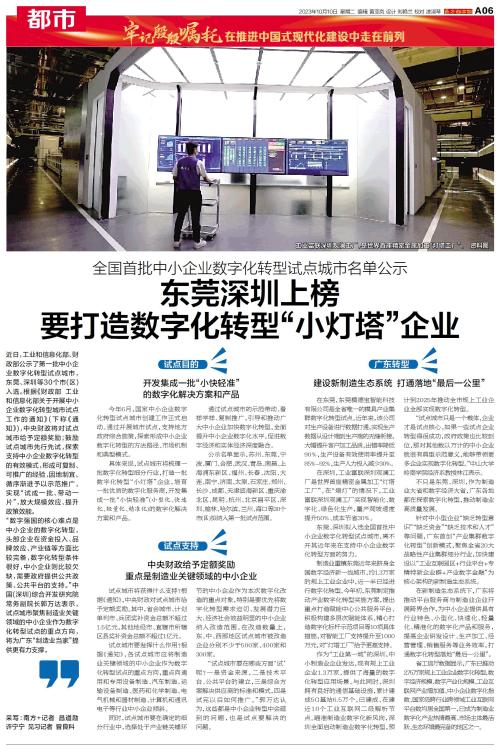 东莞深圳上榜 要打造数字化转型“小灯塔”企业