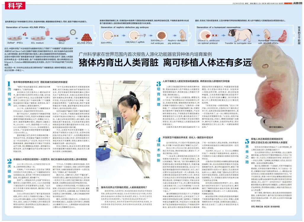 近日,中国科学院广州生物医药与健康研究院在猪体内成功培育出人源中期肾脏,是世界范围内首次报告人源化功能器官异种体内培育案例。