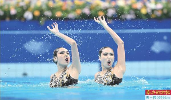 花样游泳双人项目比赛分为技术自选和自由自选。最终,她们以总分526.8620分摘得金牌。