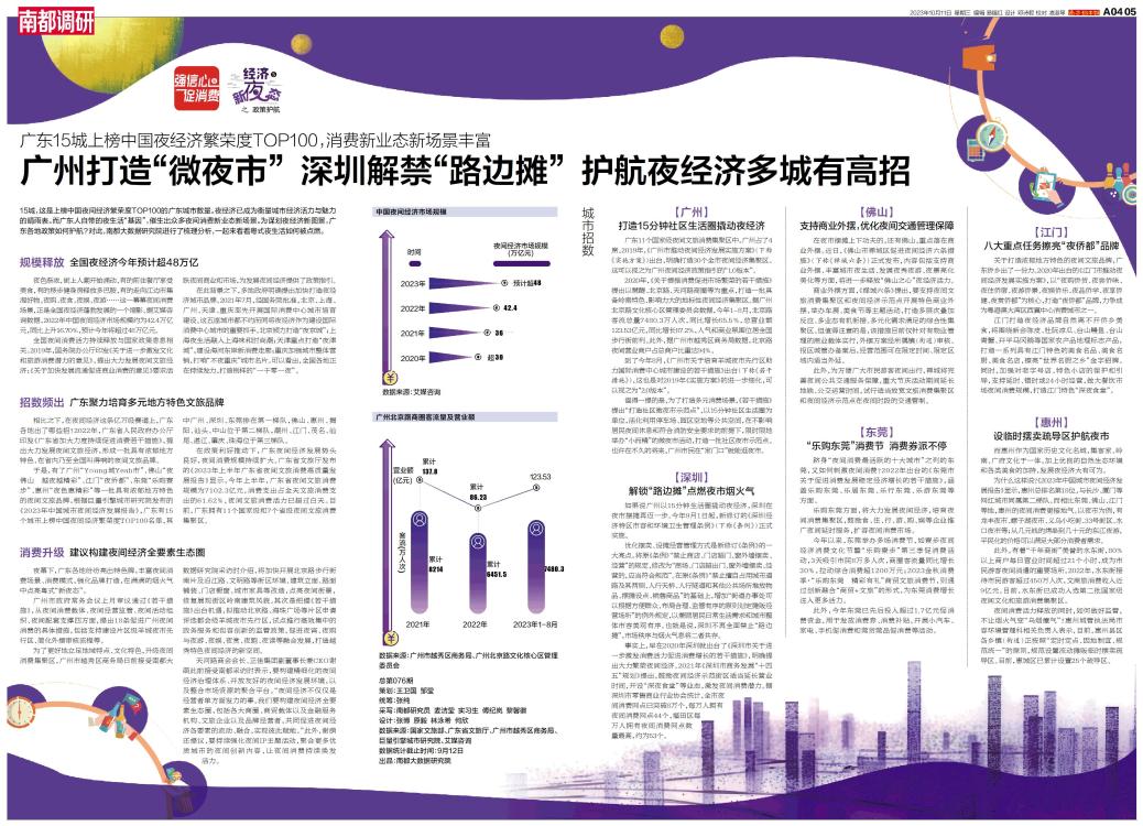 15城,这是上榜中国夜间经济繁荣度TOP100的广东城市数量。夜经济已成为衡量城市经济活力与魅力的晴雨表。