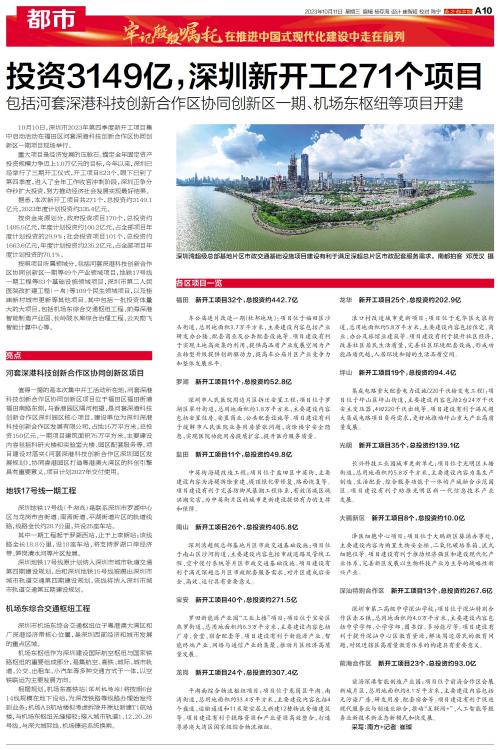 10月10日,深圳市2023年第四季度新开工项目集中启动活动在福田区河套深港科技创新合作区协同创新区一期项目现场举行。