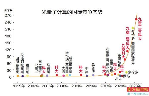 10月11日,中国科学技术大学中国科学院量子信息与量子科技创新研究院潘建伟、陆朝阳、刘乃乐等组成的研究团队与中国科学院上海微系统与信息技术研究所、国家并行计算机工程技术研究中心合作,成功构建了255个光子的量子计算原型机“九章三号”,再度刷新了光量子信息的技术水平和量子计算优越性的世界纪录。