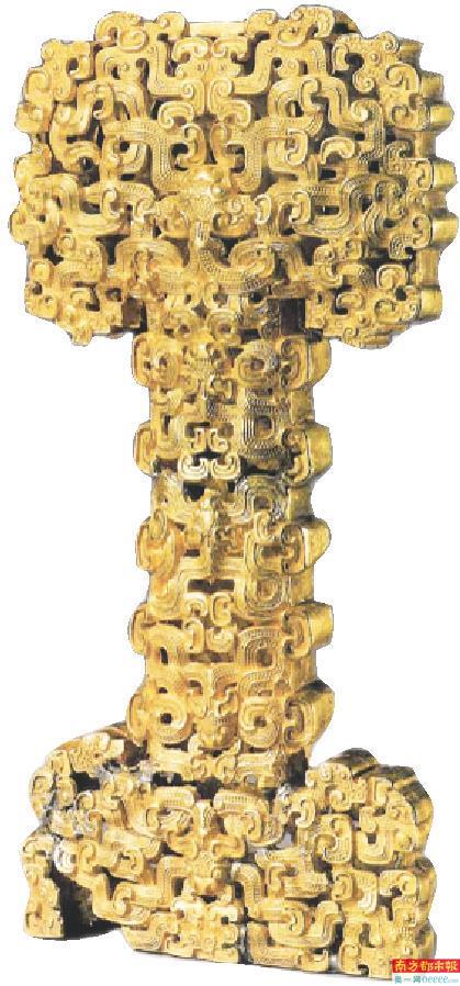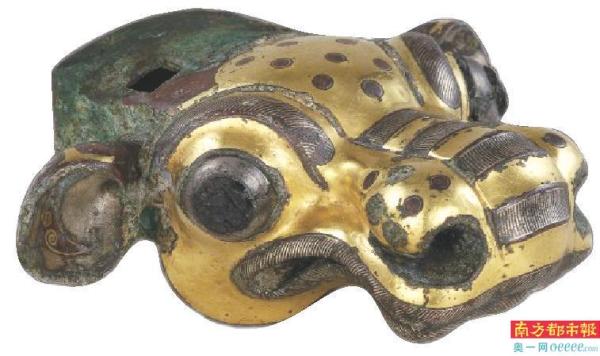 另一件镂空雕蟠虺纹金剑柄也是春秋战国之物。它长10.4厘米,宽3.7厘米,金质地,剑格、剑柄、剑首合铸在一起,通体镂空,雕刻蟠虺纹(又称蛇纹)。这件镂空雕蟠虺纹金剑柄20世纪早期出土于山西大同的东周墓葬,后被盗墓贼偷盗出境,流落海外,最后成了大英博物馆的收藏品。