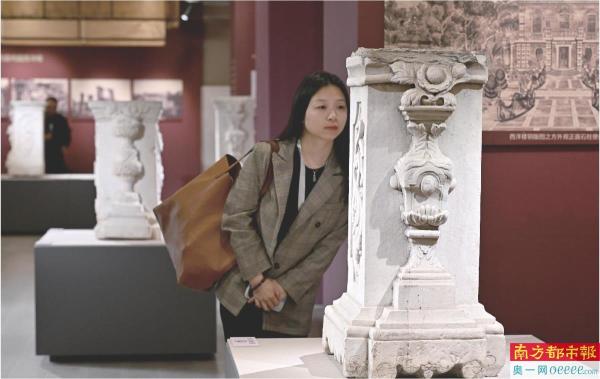 据介绍,在现存乾隆五十一年(1786)西洋楼铜版图中,可见海晏堂、谐奇趣、方外观、养雀笼、远瀛观等均使用了较多的石柱,这些石柱分布于庭院、喷泉池边、楼梯、楼层平台等处,发挥着实用、审美的价值。