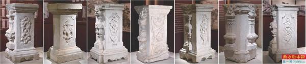 圆明园西洋楼建筑以木质梁柱为基础,通过用砖砌筑内墙,外部包以汉白玉等石材的方法建造。其建筑主体仿西方巴洛克风格建造,常在建筑上设立石柱作为望柱或栏杆连接物使用,同时还具有装饰的作用。两侧没有雕花的石柱应为建筑上的联排装饰物,两侧饰有花瓶或花纹的石柱则用于楼梯或楼层平台栏杆部分,花瓶的样式则是配合栏杆形制雕刻而成。