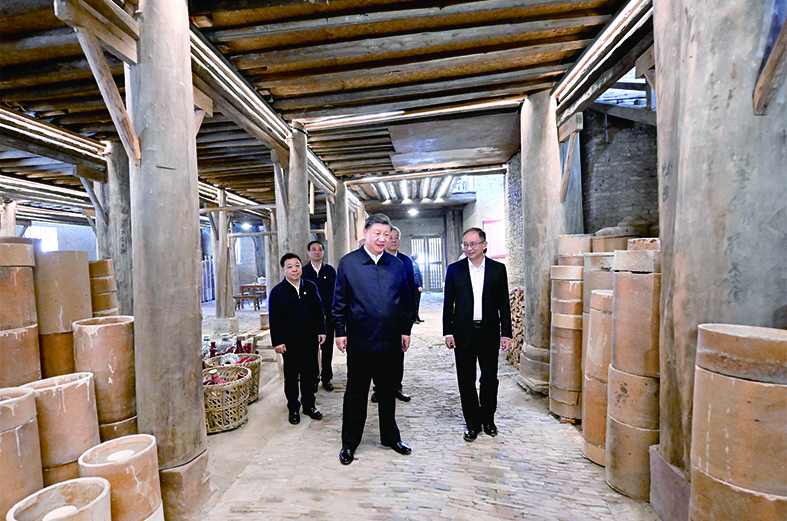 11日上午,习近平在景德镇市陶阳里历史文化街区明清窑作群考察。 新华社发