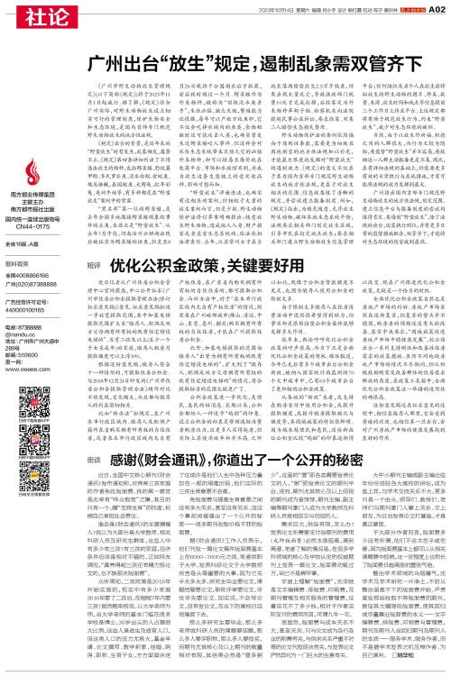 《广州市野生动物放生管理规定》将于2023年11月1日起施行。