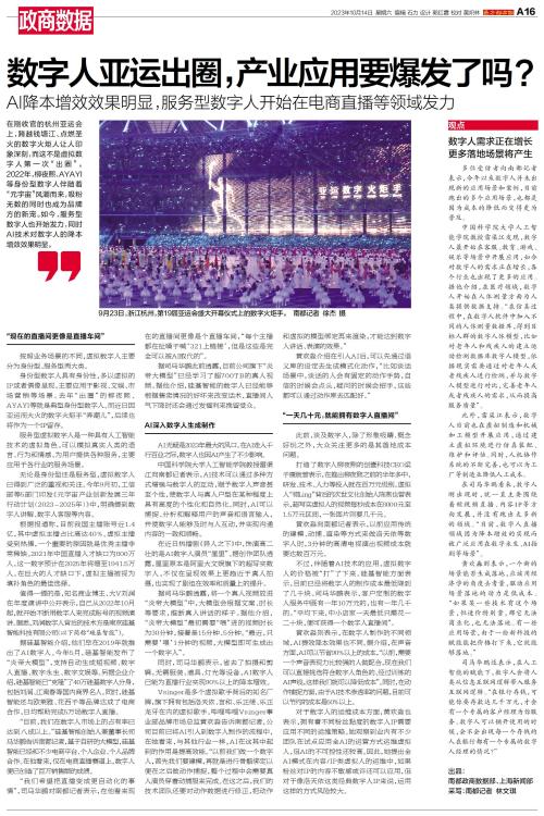 在刚收官的杭州亚运会上,跨越钱塘江、点燃圣火的数字火炬人让人印象深刻,而这不是虚拟数字人第一次“出圈”。