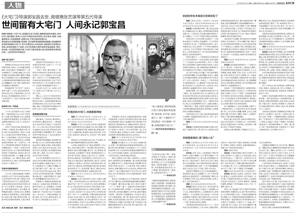 南都记者获悉,10月11日,电视剧《大宅门》导演、编剧郭宝昌在京离世,享年83岁。