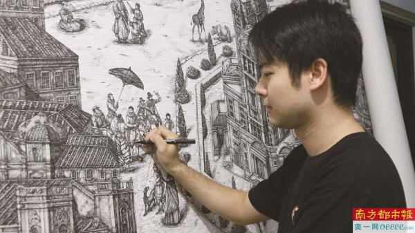 霍凯盛:我大概画了10年吧,中间因为眼睛的原因去医院很多次了,眼力消耗非常大,眼药水都用了很多了。没办法,自己喜欢,是我的专业,这个也是我的自信,所以很矛盾。你高度专注去画画,就很难抽出来。当你专心的时候就不想离开,也就想一直画下去。这样子其实对身体,不光是眼睛,损耗都很大。