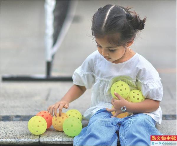 9月28日,匹克球运动有不同年龄段的受众,3岁的混血宝宝成了球场里常来探班的小粉丝。