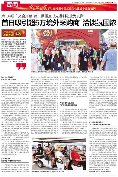 10月15日,第134届中国进出口商品交易会(广交会)正式开幕。