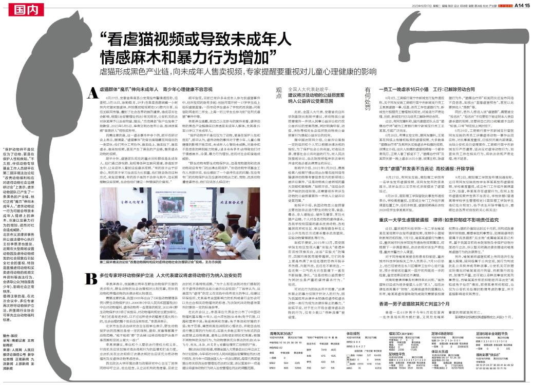 “保护动物并不是仅仅为了动物,更是在保护人性和良知”,胡平认为,虐待动物的事件对于青少年、儿童心理健康的影响不能忽视。未成年人心智尚未成熟,对是非和不良信息的辨别能力较差,(虐杀动物事件)会导致他们对于情感麻木、冷漠,暴力行为增加,进而对社会和谐造成威胁。
